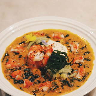 深海老虎虾浸龙虾浓汤忌廉汁苋菜面条